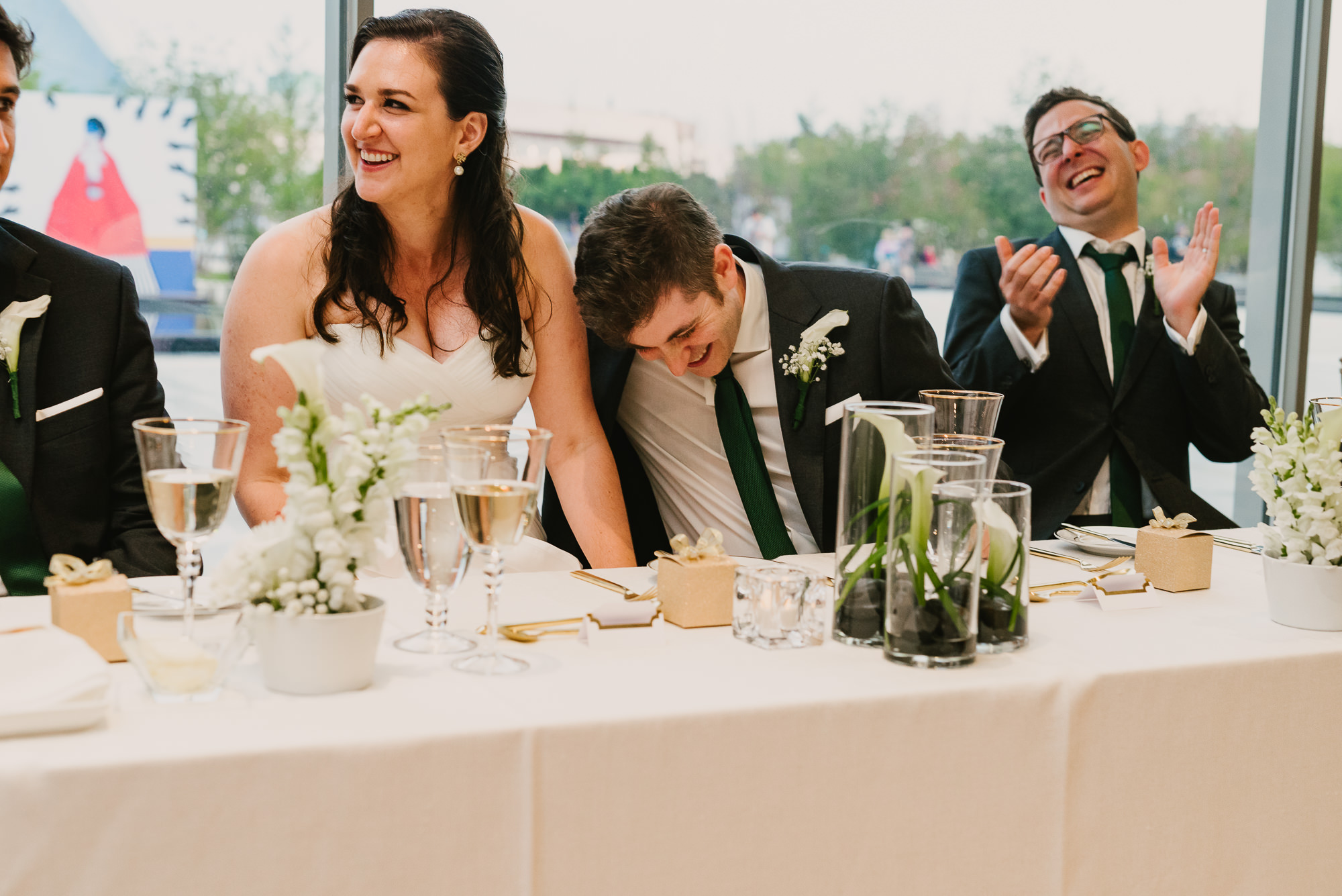 It is laughter. And it is the skeleton, the muscles and tendons of this day. It encompasses everything this couple is about. Their friends, their family, their love for each other, intertwined with laughter. Good times below,.